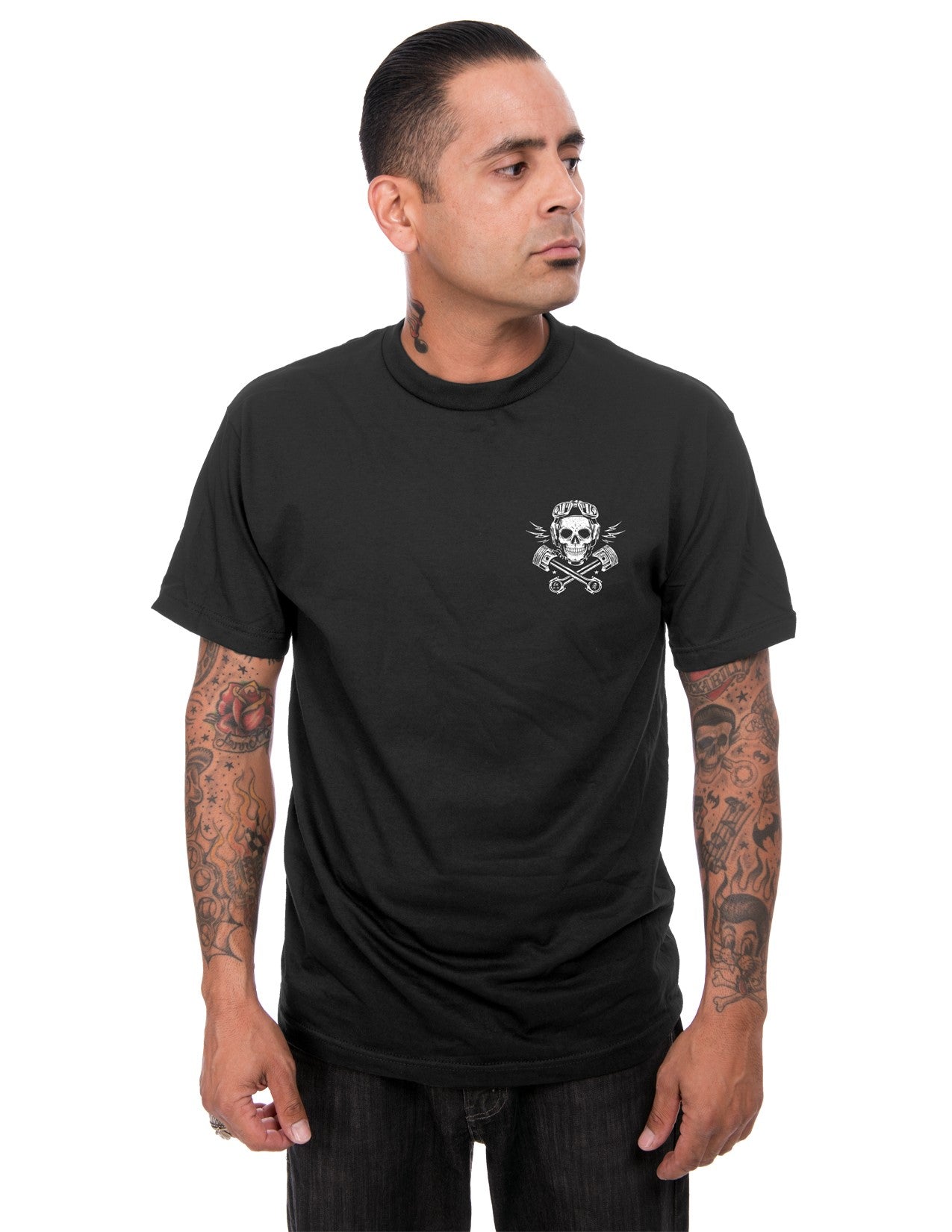 This tee is Built for Speed! This Steady brand men's tee shirt features a classic hot rod emblem printed front and back.