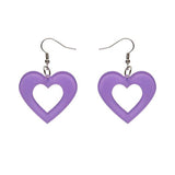 Fall in love with these heart-shaped Erstwilder Essentials drop earrings are made with lavender bubble resin. These heart drop earrings make for that perfect pop of colour to compliment your outfit, or to match with your favourite resin or acrylic brooch or necklace.