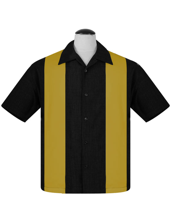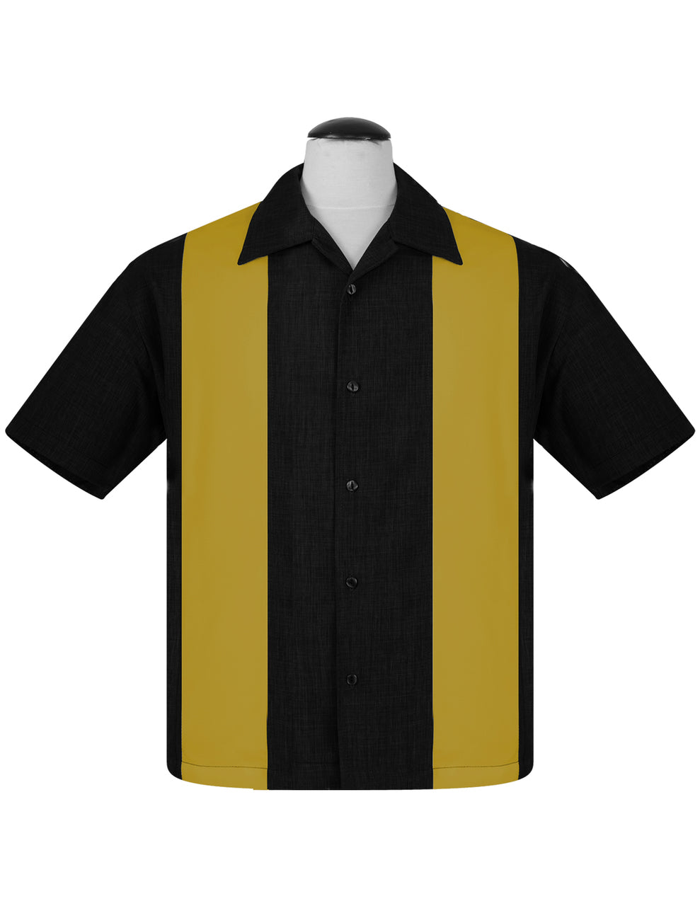 PopCheck Double Panel Bowling Shirt in Black/Mustard