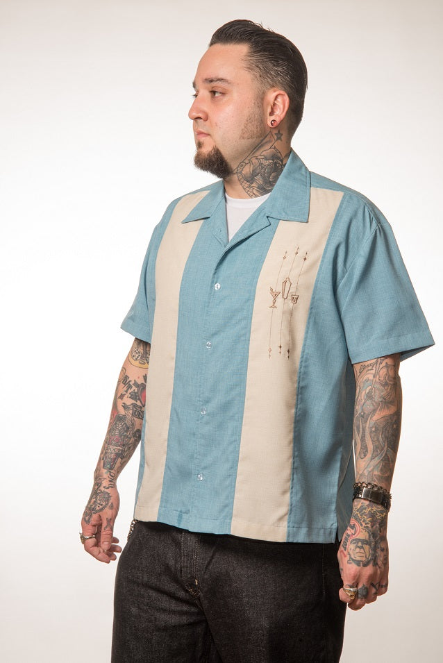 The Shake Down Bowling Shirt in Sea Foam/Stone